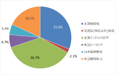 運用資産の約7割を米国株式のインデックス中心に長期運用しています