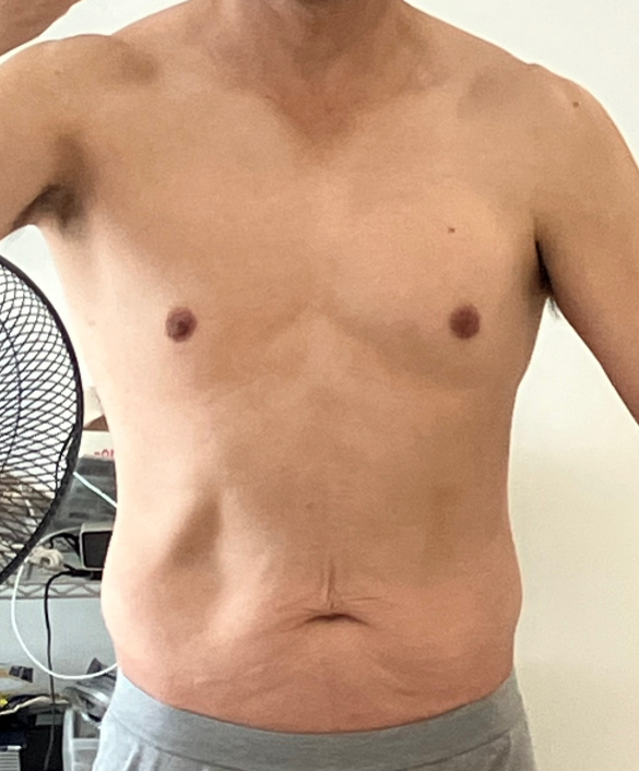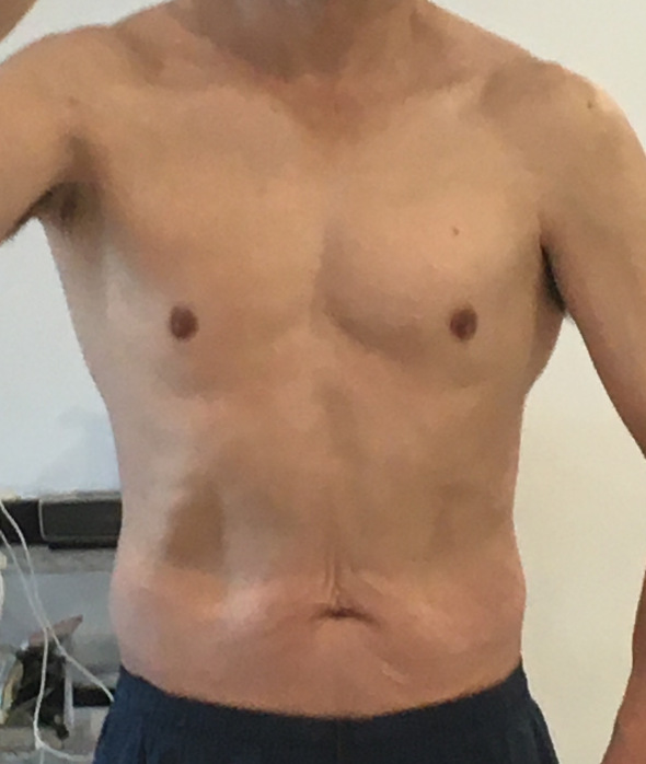 一見わかり難いかもしれませんが、毎日見てる自分にとって、胸からの下の脂肪が増えてズンドウ感が増してしまったなぁ~って感じです