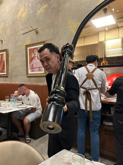 カルボナーラがでてくると、こんなでっかいペッパーミルが