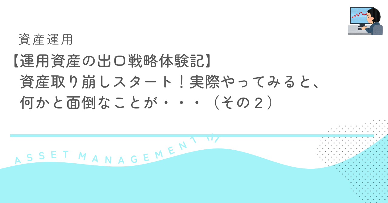 今回はその続編として、「実際に取り崩してみたら、まだまだ面倒なことが残っていた」ことに気づき、資産取り崩しのリアルにお伝えしたいと思います